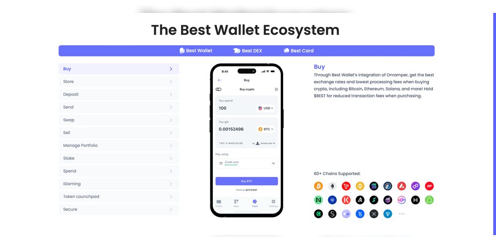 Das Best Wallet zeichnet sich durch seine intuitive Benutzeroberfläche und robuste Sicherheitsmaßnahmen aus, die es sowohl für Anfänger als auch für Fortgeschrittene attraktiv machen. Mit Unterstützung für über 60 Blockchains, integrierten DEX-Funktionen, Marktanalysen, No-KYC und weitere exklusive Vorteile hat sich Best Wallet zuletzt als eine immer beliebtere Wahl etabliert.