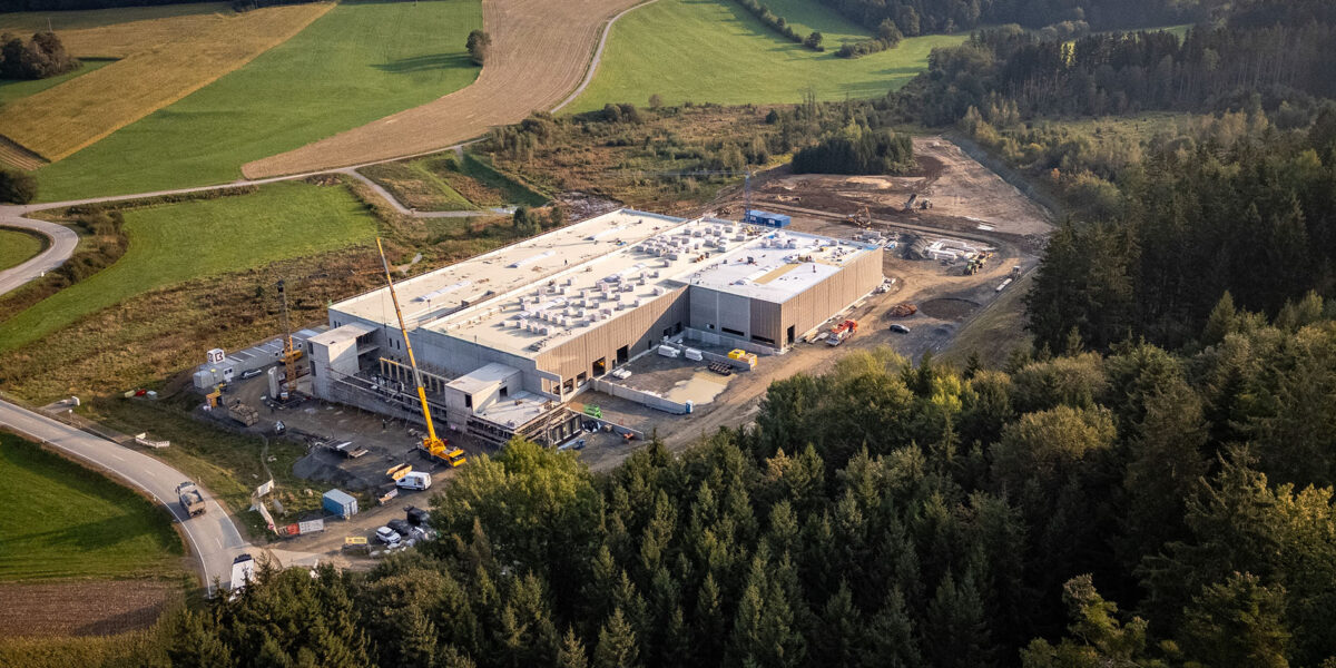 Der Spezialist für Fremdkörperdetektion und Materialsortierung Sesotec erweitert seine Kapazitäten in Schönberg (Bayern). Der Neubau in anspruchsvollem Gelände weist nicht nur eine minimalistische Architektur nach einem Entwurf von Dietrich Untertrifaller Architekten aus Wien auf, sondern auch ein innovatives Energiekonzept. Das Unternehmen Brüninghoff fungiert bei diesem Bau als Generalübernehmer. Das Besondere: erstmalig wird eine kreislauffähige Holz-Beton-Verbunddecke eingesetzt.