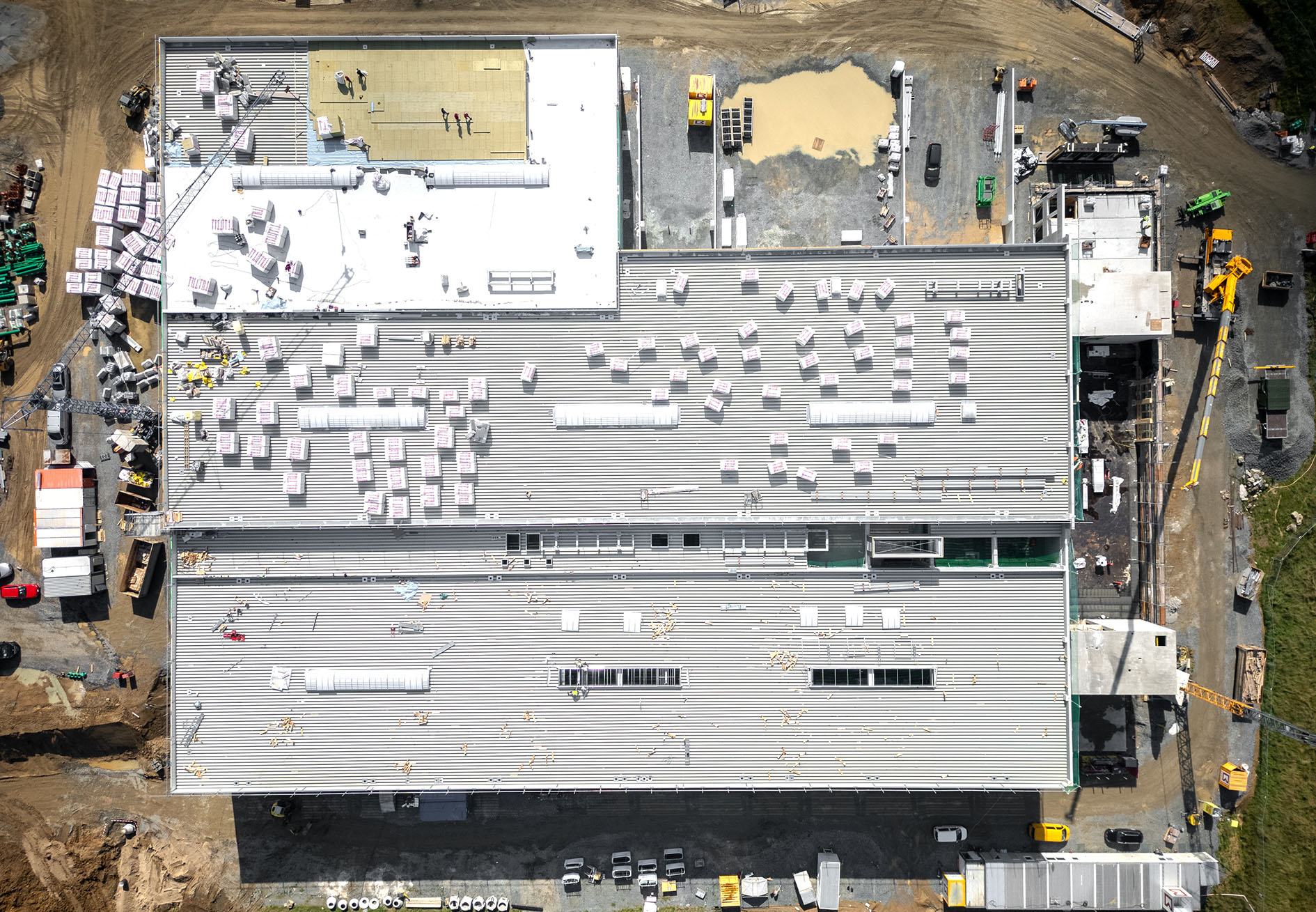 Der Neubau berücksichtigt mögliche zukünftige Erweiterungen. Unter einem ressourcenschonenden Umgang mit den verwendeten Materialien – insbesondere durch die individuell angepasste Gebäudetechnik und den Einbau wiederverwendbarer Deckenelemente – entsteht ein zukunftsweisendes Objekt. Die Fertigstellung ist für das Frühjahr 2025 geplant.
