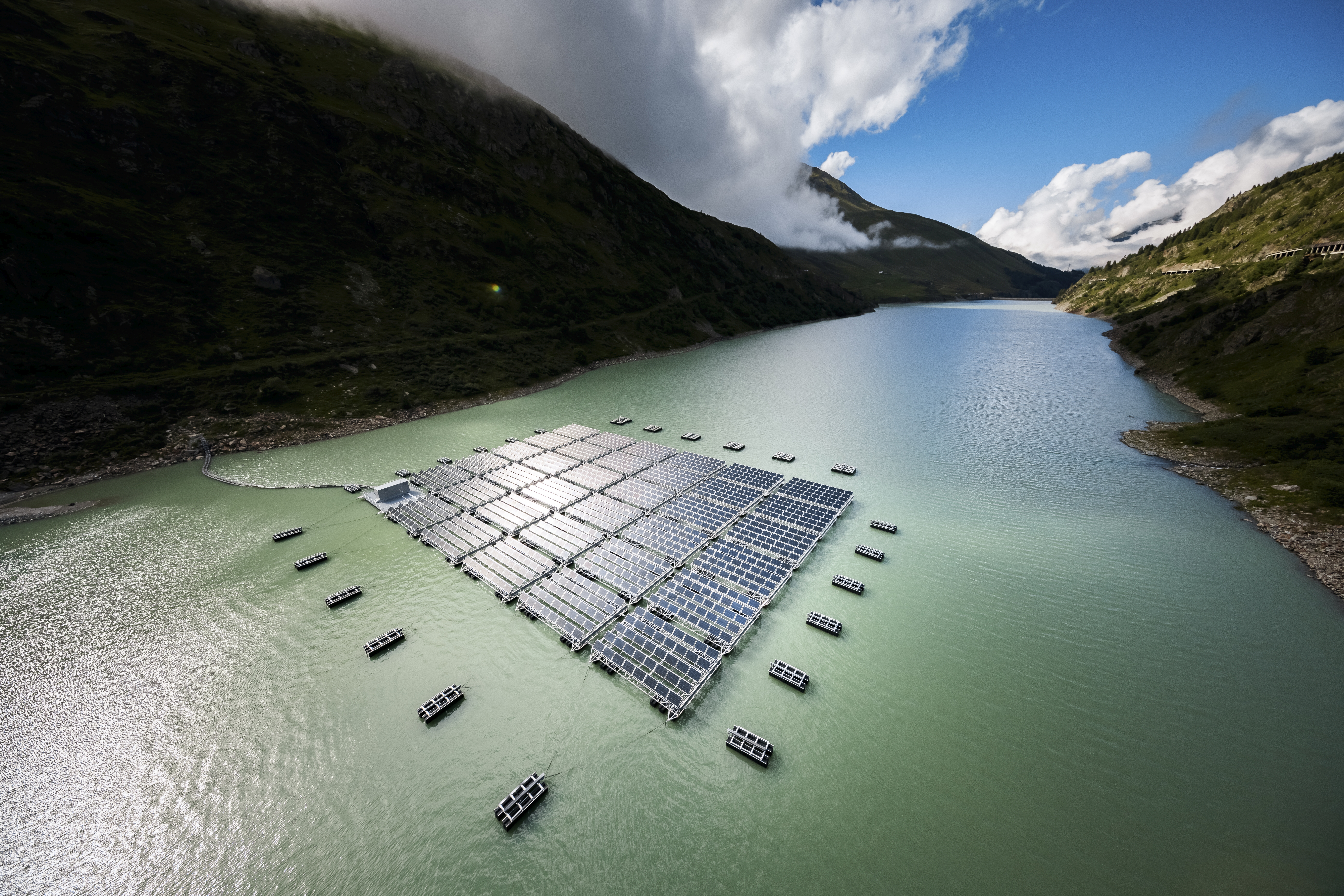 Floating-PV auf dem Lac des Toules à Bourg-Saint-Pierre in der Schweiz.