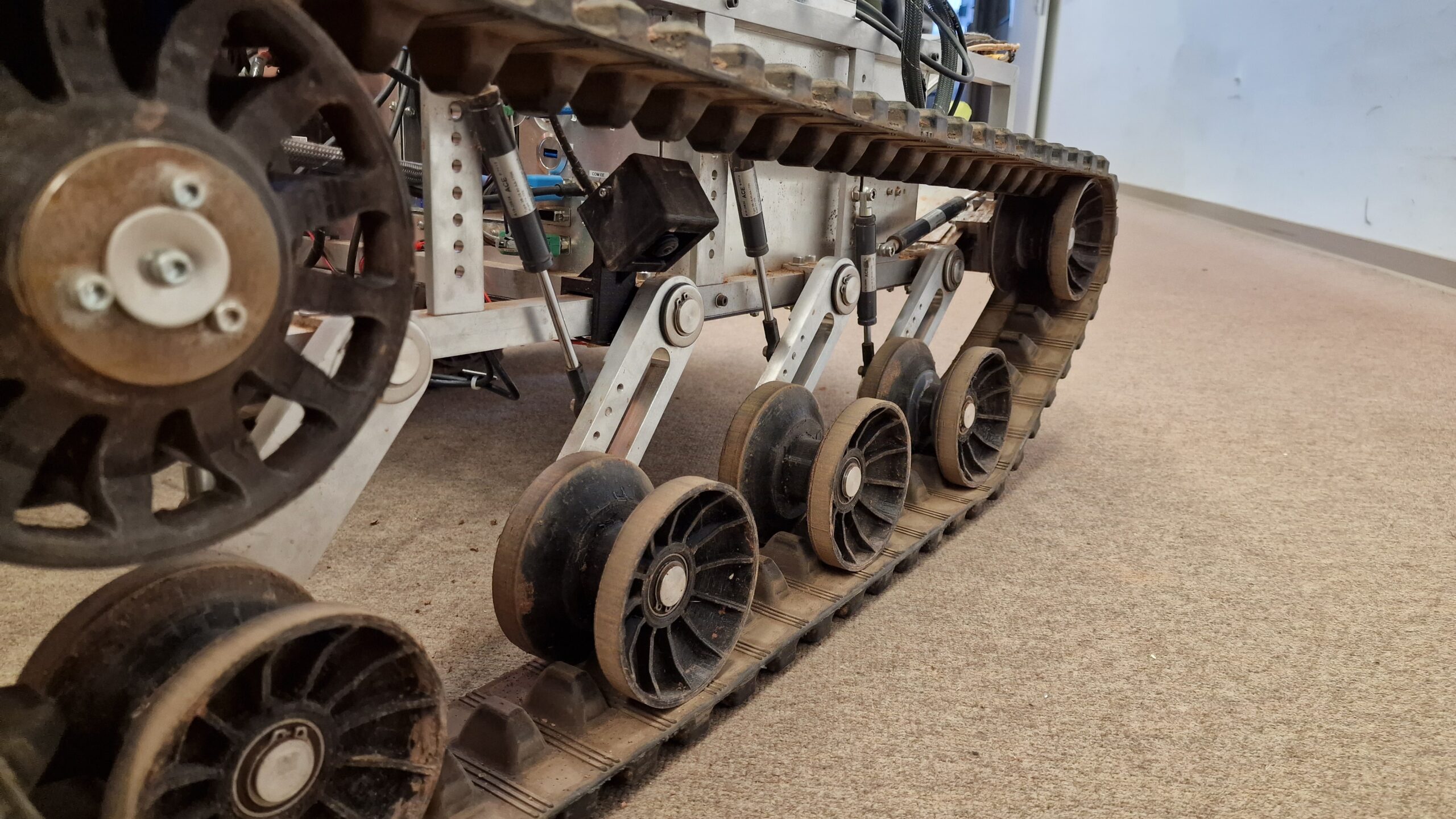 Manuel Messner fügt erläuternd hinzu: „Die schon bewährten sechs GS-15-60 setzen wir für die restlichen Laufrollen ein, um Bodenfreiheit und Stabilität zu gewährleisten. Auch die von ACE mitgelieferten Gelenkköpfe waren bereits 2019 Bestandteil unserer Konstruktion. Wir haben für Ares lediglich die Lagerschuhe eliminiert, um Gewicht und Bauraum zu sparen.“