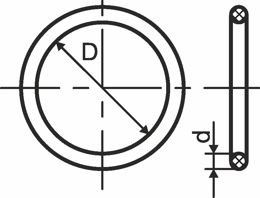 Der O-Ring ist aufgrund seiner einfachen Form und seiner guten Verfügbarkeit in den verschiedensten Abmessungen und Werkstoffen die weltweit wohl am häufigsten eingesetzte Dichtung. Er lässt sich durch seinen Innendurchmesser D und seinen Schnurdurchmesser d beschreiben, s. Bild 1. Die Dichtwirkung eines O-Rings basiert auf dem Bestreben des elastomeren Dichtungsmaterials, nach einer Deformierung in seine ursprüngliche Form zurückzukehren. Durch eine radiale oder axiale Verpressung des O-Rings bei der Montage bildet sich daher im Kontaktbereich zwischen Dichtfläche und Elastomerdichtung die zur Abdichtung notwendige Dichtpressung pD aus, Bild 2.
