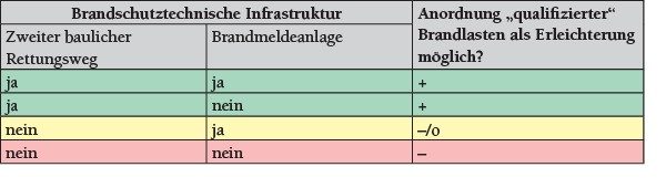 Die grundsätzliche bauordnungsrechtliche Forderung nach einer Brandlastfreiheit von Rettungswegen schließt nicht aus, dass in Einzelfällen die geplante Brandlast (z. B. Möbel, Monitore) und/oder das System der Rettungswege selbst so beschaffen sein kann, dass Brandlasten nach einer Analyse und Bewertung der Risiken als Erleichterung zugelassen werden können.