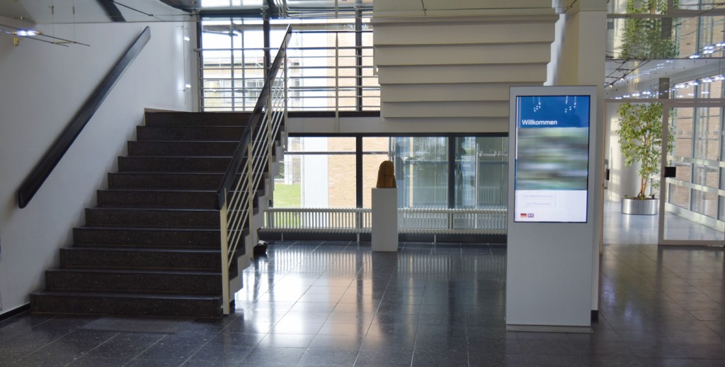 Bild 1 Informationsstele im notwendigen Treppenraum eines Verwaltungsgebäudes.