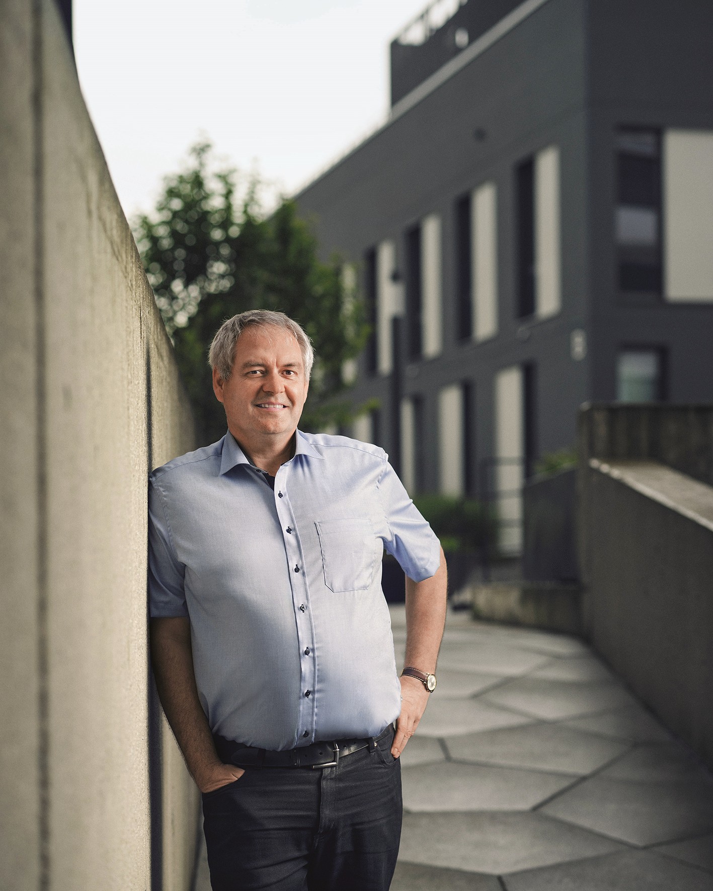 Siegfried R. Waldvogel auf dem Gelände des Max-Planck-Instituts für Chemische Energiekonversion in Mülheim an der Ruhr.