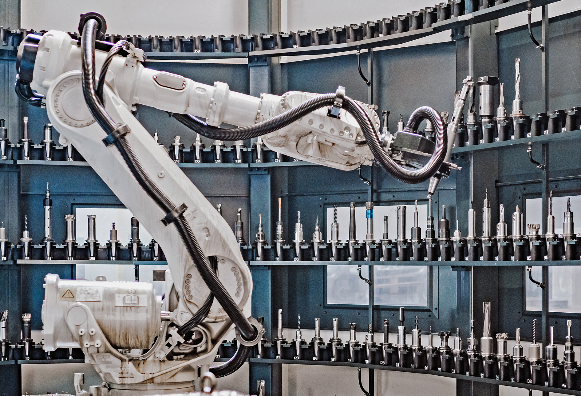 In der separaten, neben der Anlage angeordneten „Tool-Arena“ verwaltet ein Roboter 395 Werkzeuge sowie fünf Fräsköpfe.