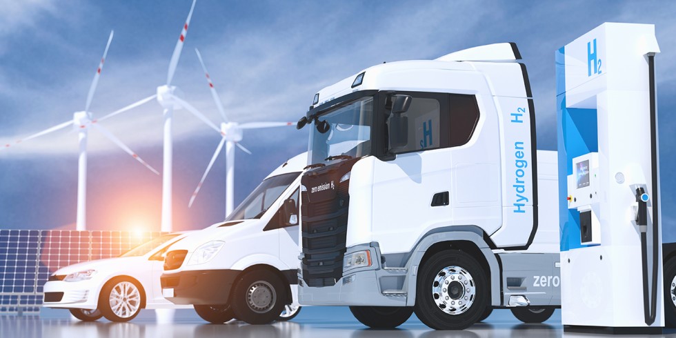 Ein Wasserstoff-Truck für emissionsfreie, umweltfreundliche Transporte: Neuartige Antriebskonzepte erfordern zuverlässige Dichtheits-Prüfverfahren, um Lecks ausschließen zu können. Grafik: shutterstock