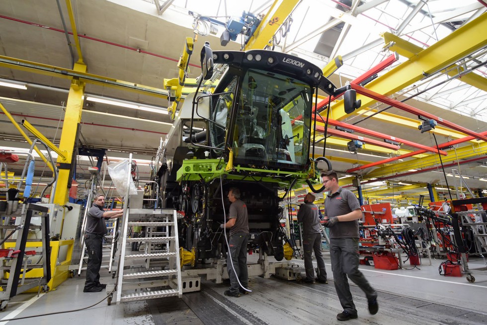 Fließmontage von Mähdreschern bei Claas in Harsewinkel im variantenreichen Produktmix: So komplex wie die Produkte sind auch die Lieferketten. Bild: Claas