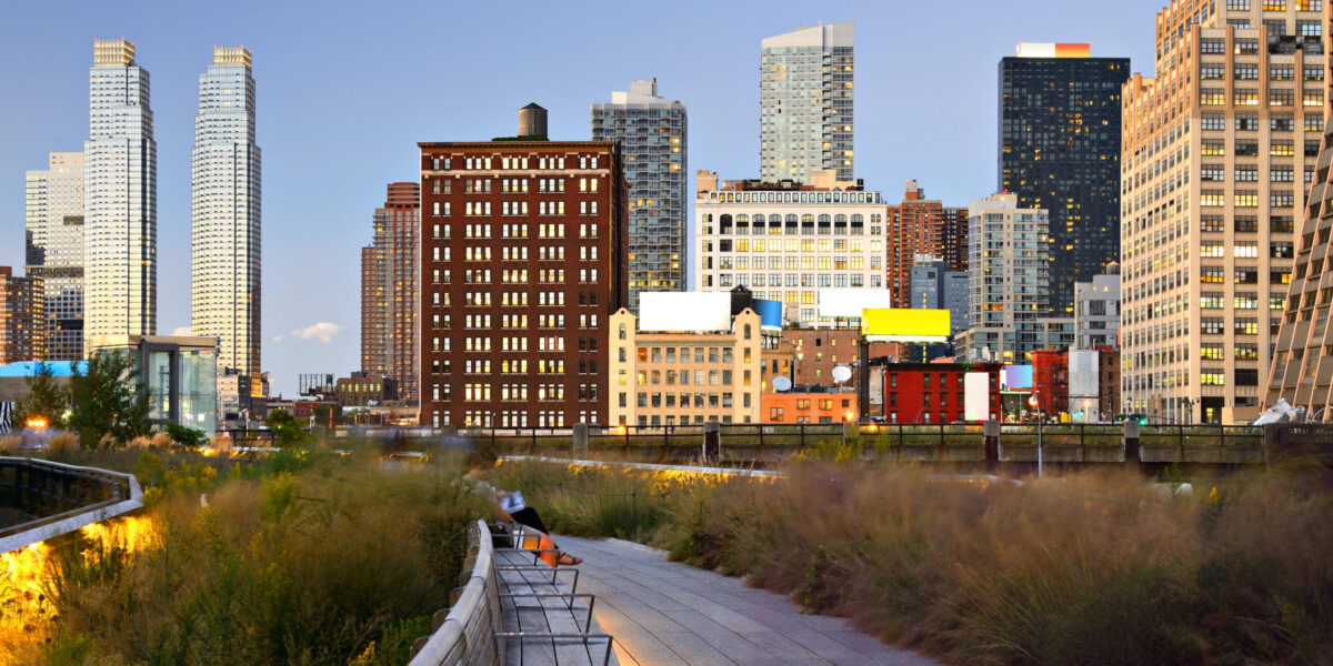 Auf der High Line ist ein spektakulärer Blick auf die Skyline von New York möglich.