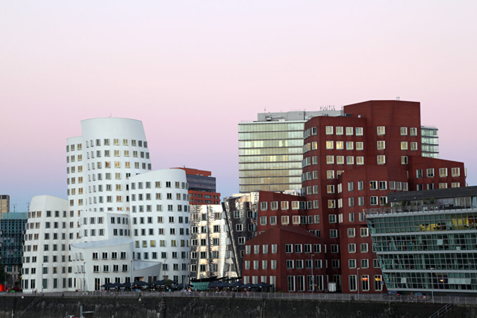 Der Neue Zollhof in Düsseldorf zählt zu den bekanntesten Gehry-Bauten in Deutschland.