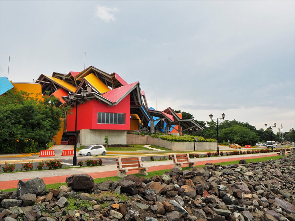 Wie auch viele andere Bauwerke Gehrys polarisiert und fasziniert das Museo de la Bioderversidad in Panama-Stadt. Das Museum der Artenvielfalt liegt am Pazifischen Ozean und genau dort, wo der Panamakanal beginnt. Es ist Frank Gehrys einziges Bauwerk in Lateinamerika und sieht so aus, als ob ein Kind bunte Bauklötze ineinander verkeilt hätte – nur wesentlich größer. Von weitem betrachtet könnte man das Museum aber auch für einen Schrottplatz halten.