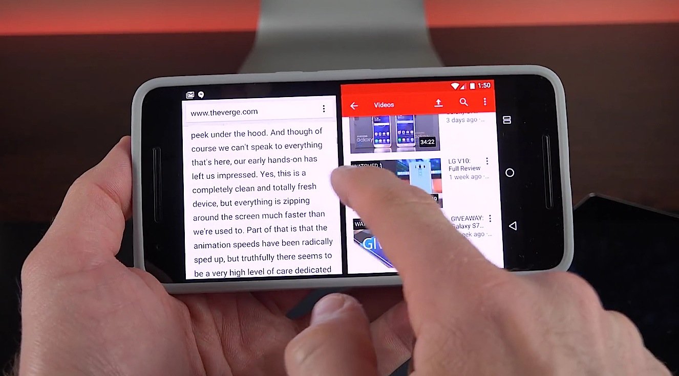 „Multi-window“ heißt ein neues Feature, mit dem laut Blogeintrag zwei Apps gleichzeitig laufen und in zwei Fenstern nebeneinander angezeigt werden. Das Größenverhältnis der beiden Fenster zueinander lässt sich per Fingerzug einstellen.