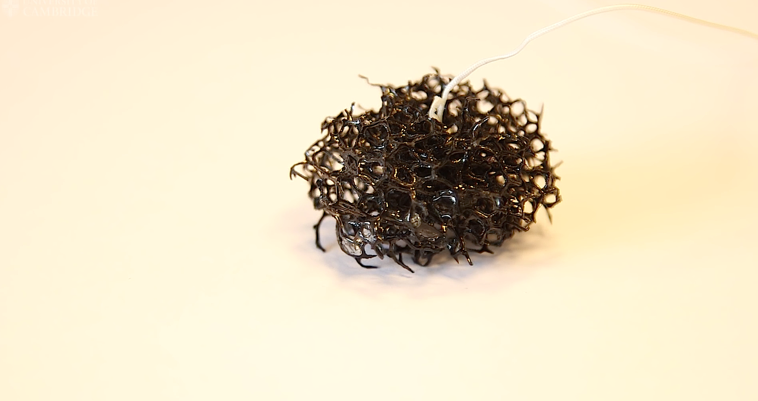Cyto-Schwamm der Forscher der Cambridge University: Er ist in einer Kapsel zusammengpresst, die sich im Magen entfaltet. Mit einer Schnur zieht der Arzt den Schwamm durch die Speiseröhre.