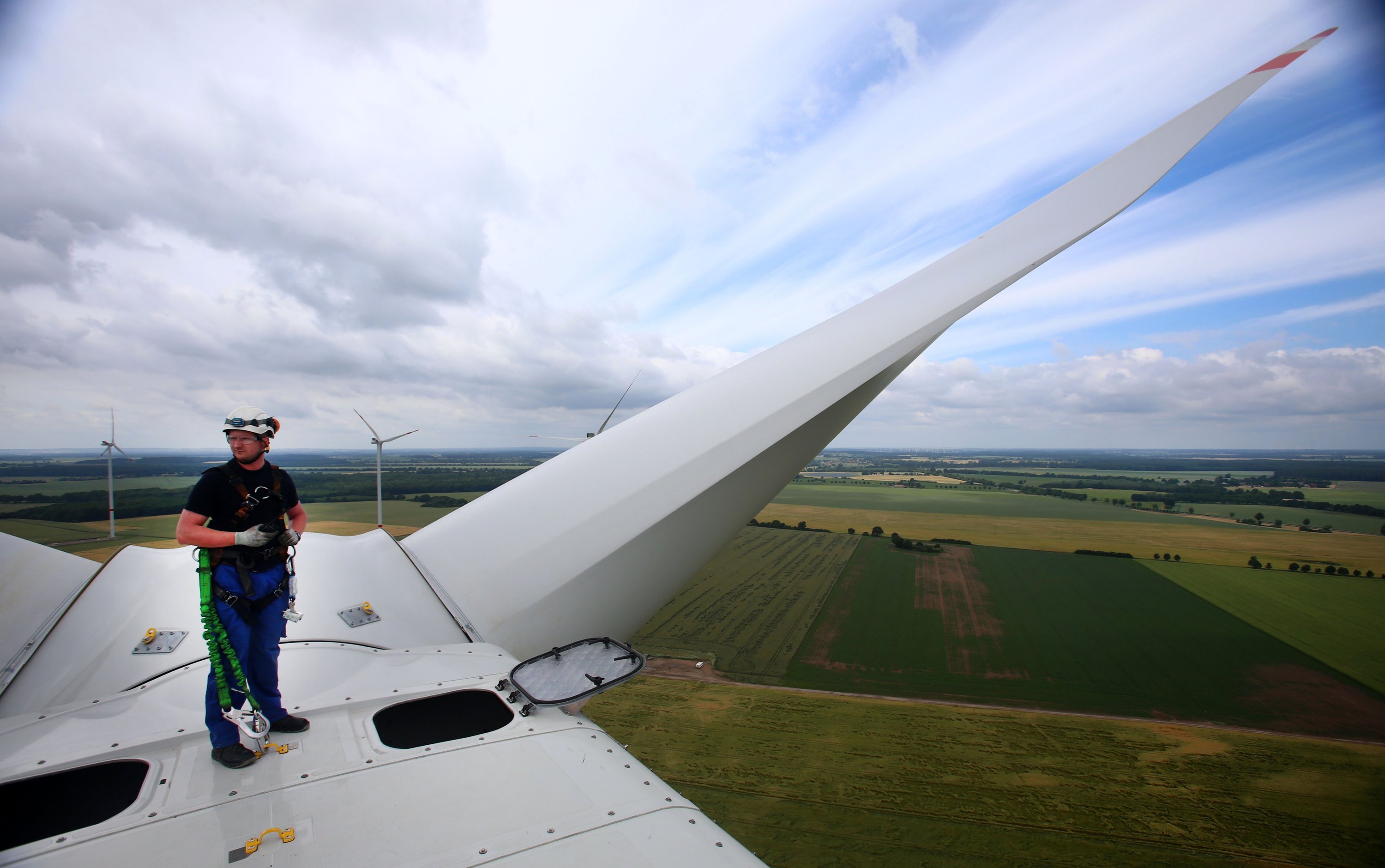 Riesige Rotorblätter der Windkraftanlagen lassen sich nur schwer warten und reparieren. Ein Selbstheilungsprozess könnte den Betrieb wirtschaftlicher machen.
