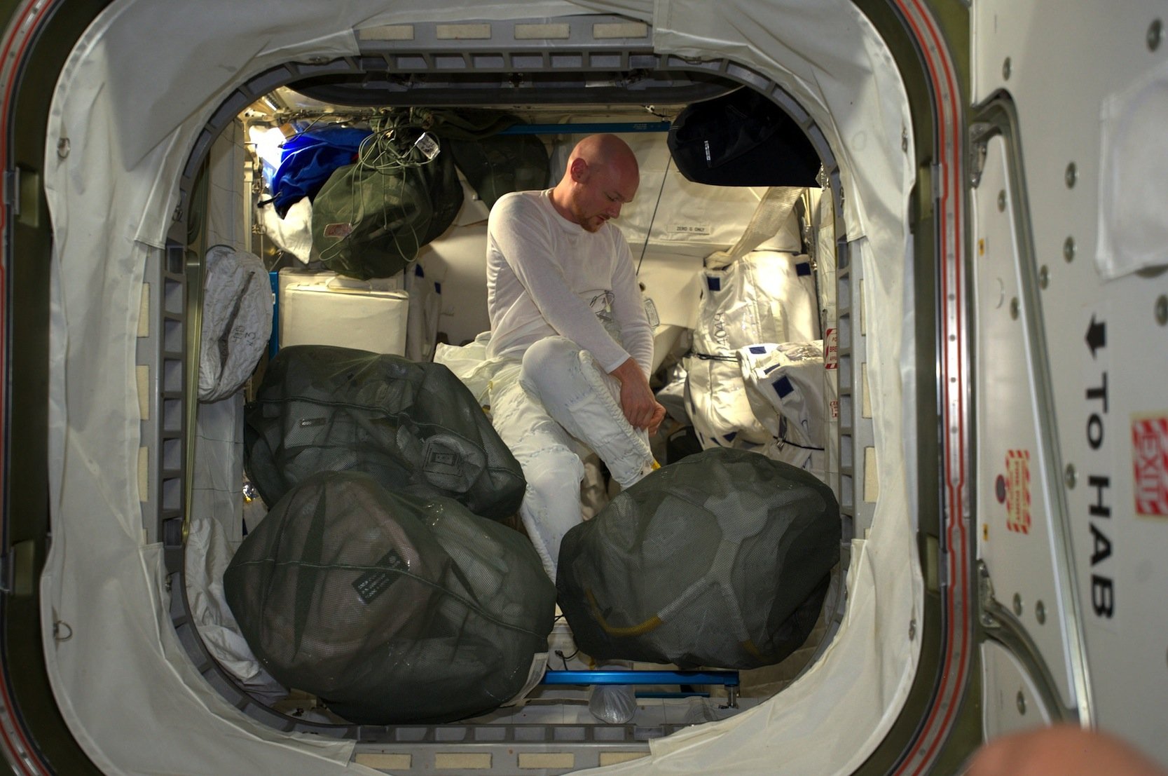 Alexander Gerst 2014 in Unterwäsche, als er sich auf seinen Spacewalk vorbereitete.