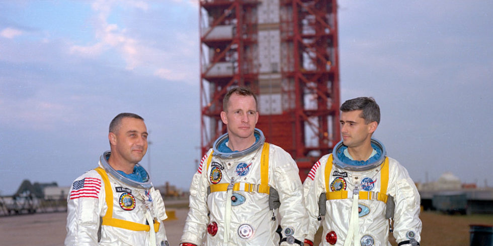 Die Crew der Apollo-1-Mission, die bei einem Test auf der Startrampe ums Leben kam (v.l.): Gus Grissom, Ed White und Roger Chaffee.