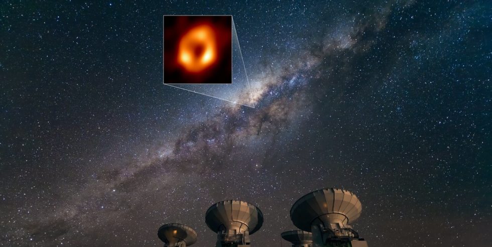 Das Bild liefert die Beweise dafür, dass es sich bei dem Objekt im Zentrum unserer Galaxie tatsächlich um ein Schwarzes Loch handelt. Die Aufnahme wurde von einem internationalen Forschungsteam unter Verwendung von Beobachtungen aus einem weltweiten Netzwerk von Radioteleskopen erstellt: Unter dem Namen Event Horizon Telescope (EHT) Collaboration hatten sich die Wissenschaftlerinnen und Wissenschaftler zusammengeschlossen.