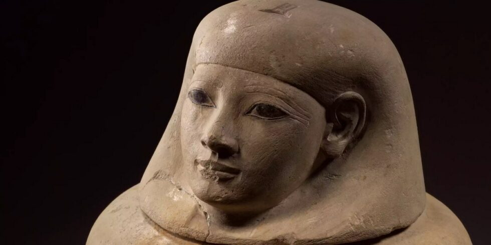 Dieser etwa 3.500 Jahre alte Kanopenkrug aus Sandstein trägt das Abbild von Senetnay. Die Analyse ihrer einbalsamierten Überreste hat Aufschluss darüber gegeben, welche Aromen die alten Ägypter auf ihrer Reise ins Jenseits begleiteten.