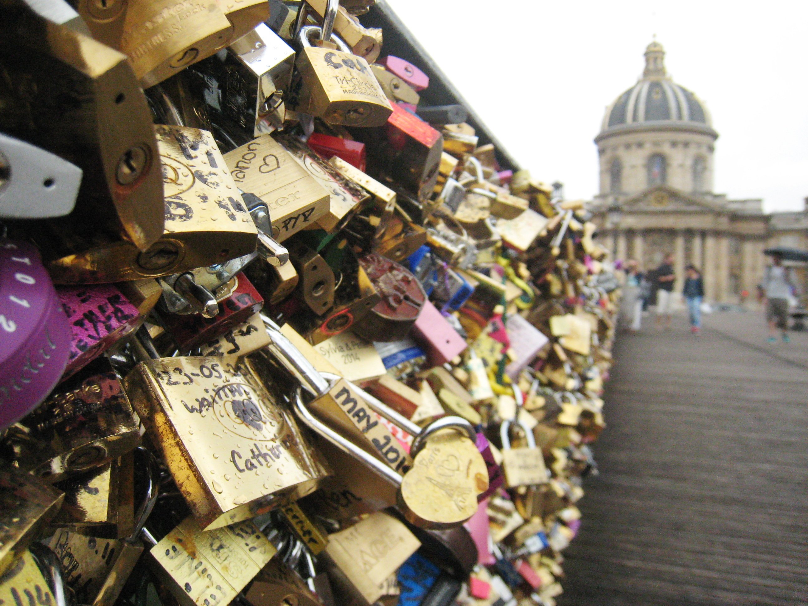 Liebesschlösser auf der Brücke Pont des Arts in Paris: Im Juni 2014 das Geländer unter der metallenen Last zusammen – das Bauwerk musste sogar vorübergehend gesperrt werden. Jetzt entfernt die Stadtverwaltung vorsichtshalber regelmäßig die in der Summe schwerwiegenden Treueschwüre.