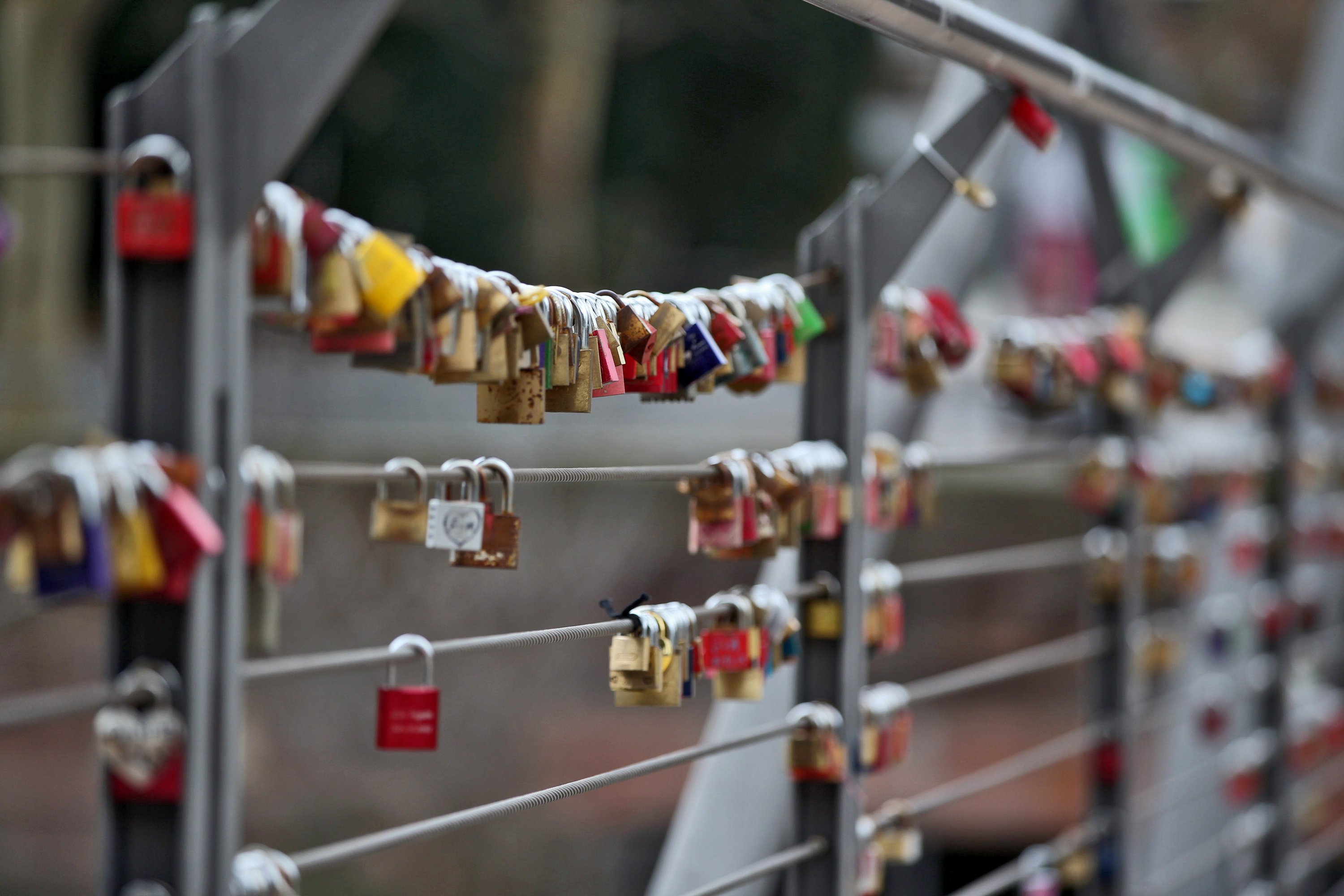 Zu Tausenden hängen sie an Brückengeländern. Die unzähligen Vorhängeschlösser, oft graviert mit Herzen und Initialen, sollen ein Symbol der ewigen Verbundenheit sein. Allerdings ein sehr schweres. Die gängigen handelsüblichen Vorhängeschlösser wiegen zwischen 100 und 300 Gramm.