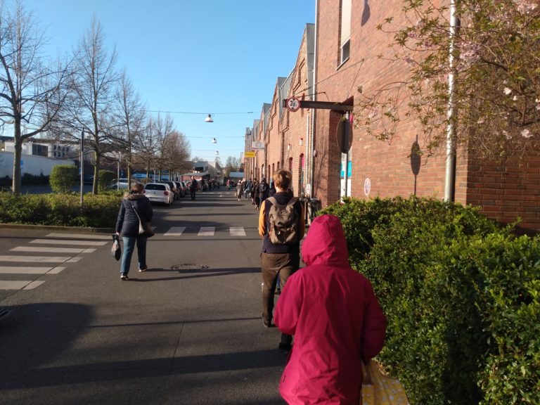 Lange Schlangen frühmorgens vor den Supermärkten und Drogerien wie hier in Düsseldorf gehören in der Coronakrise zum Normalfall.