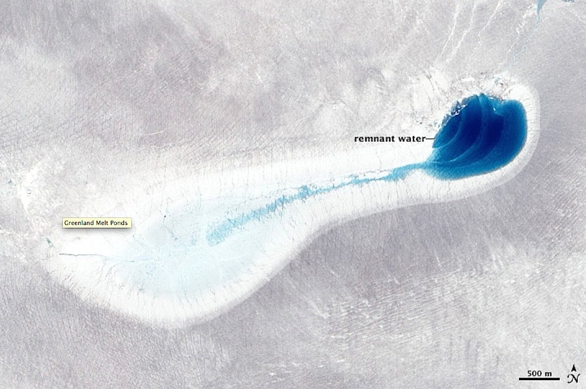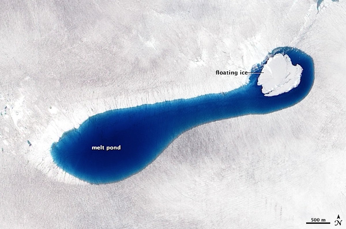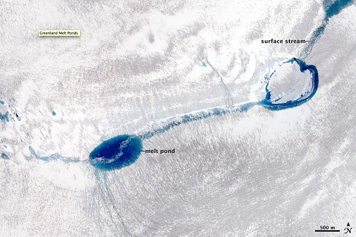 „Diese Wärme, die vom eingeschlossenen Schmelzwasser ausgeht, weicht das umgebende Eis auf, was zu einer Erhöhung des Eisflusses führen kann“, beschreibt der Gletscher- und Eisforscher Michael Willis von der Cornell University in Ithacaim US-Staat New York, die dramatische Veränderung in Grönland. „Jeden Sommer sehen Wissenschaftler, wie sich strahlend blaue Ströme auf dem grönländischen Eis bilden, wenn warme Luft den Schild schmilzt“, berichtet Robin Bell von der Columbia University in New York im Fachblatt Nature.