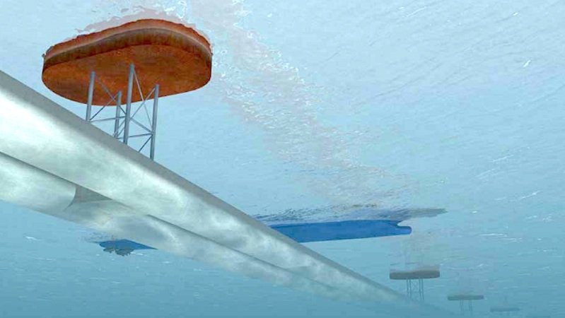 Norwegen arbeitet an den Plänen für einen schwimmenden Verkehrstunnel. Die beiden in einer Wassertiefe von 30 m schwebenden Röhren aus Beton wären eine Weltpremiere, die an die Ingenieure nie gekannte Anforderungen stellt.