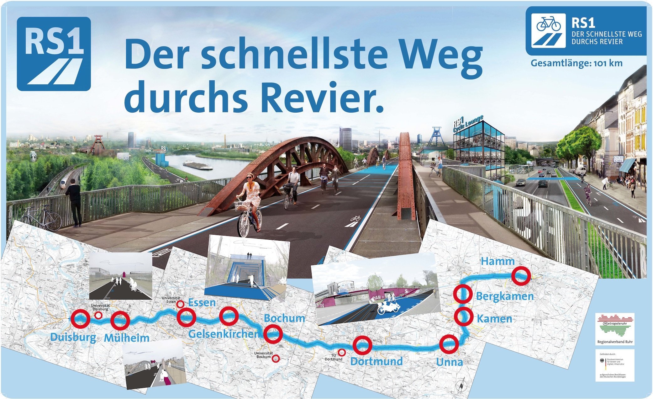 In etwa vier Jahren soll der RS1, der schon eine eigene Homepage hat, fertiggestellt sein und dann auf gut 100 km die Städte Duisburg, Mülheim, Bochum, Dortmund und Hamm verbinden. Nach bisherigen Schätzungen wird der RS1 183,7 Millionen Euro gekostet haben. Eine Machbarkeitsstudie des Regionalverbands Ruhr listet die positiven Aspekte dieser Investition auf.