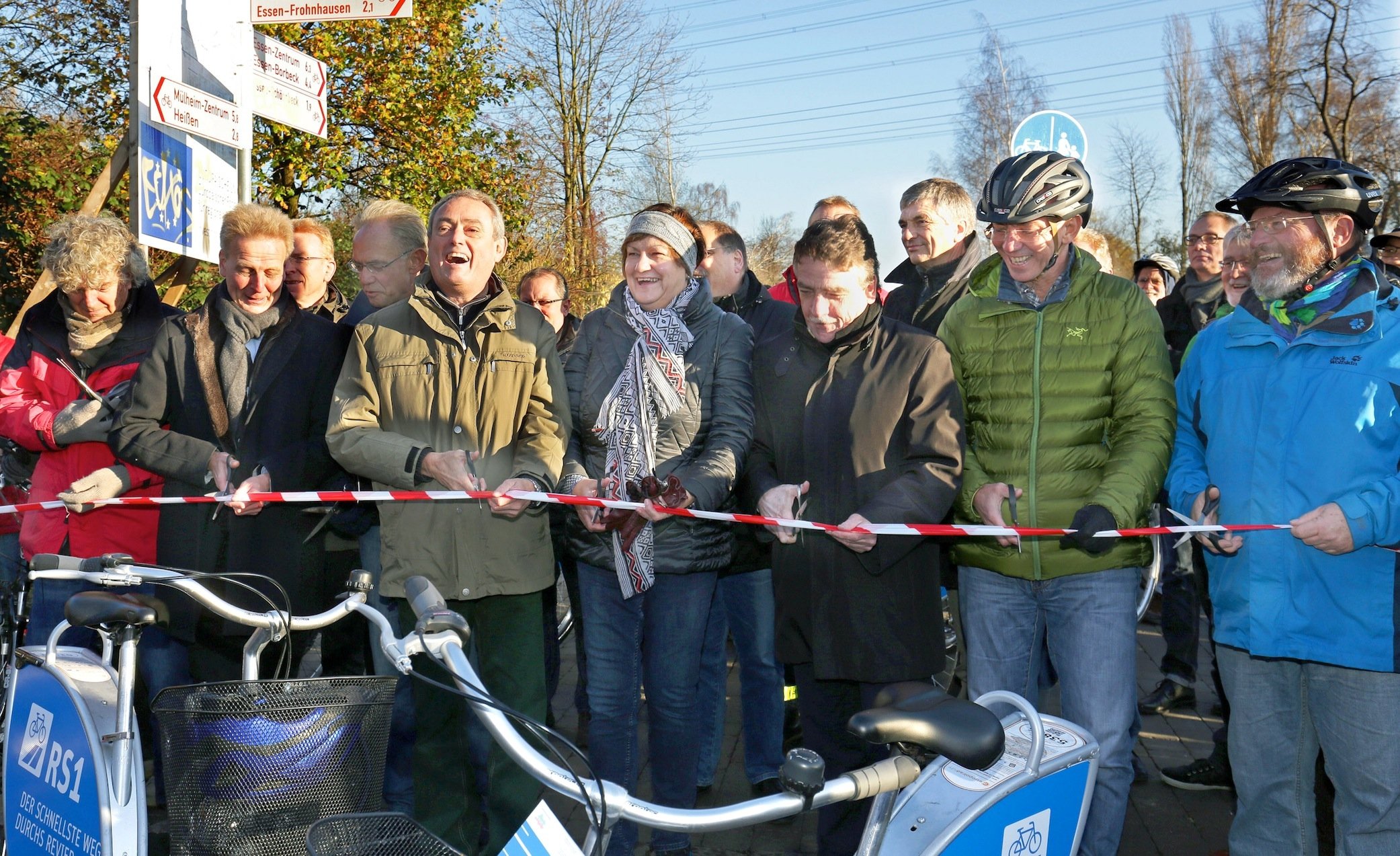 NRW-Verkehrsminister Michael Groschek, Staatssekretär Horst Becker vom NRW-Umweltministerium und RVR-Regionaldirektorin Karola Geiß-Netthöfel haben am Morgen gemeinsam mit den zweiten Abschnitt des längsten Radschnellweges in Deutschland eröffnet. Jetzt können Radfahrer zwischen den Zentren von Essen und Mülheim kreuzungsfrei und ohne Ampeln durchfahren.