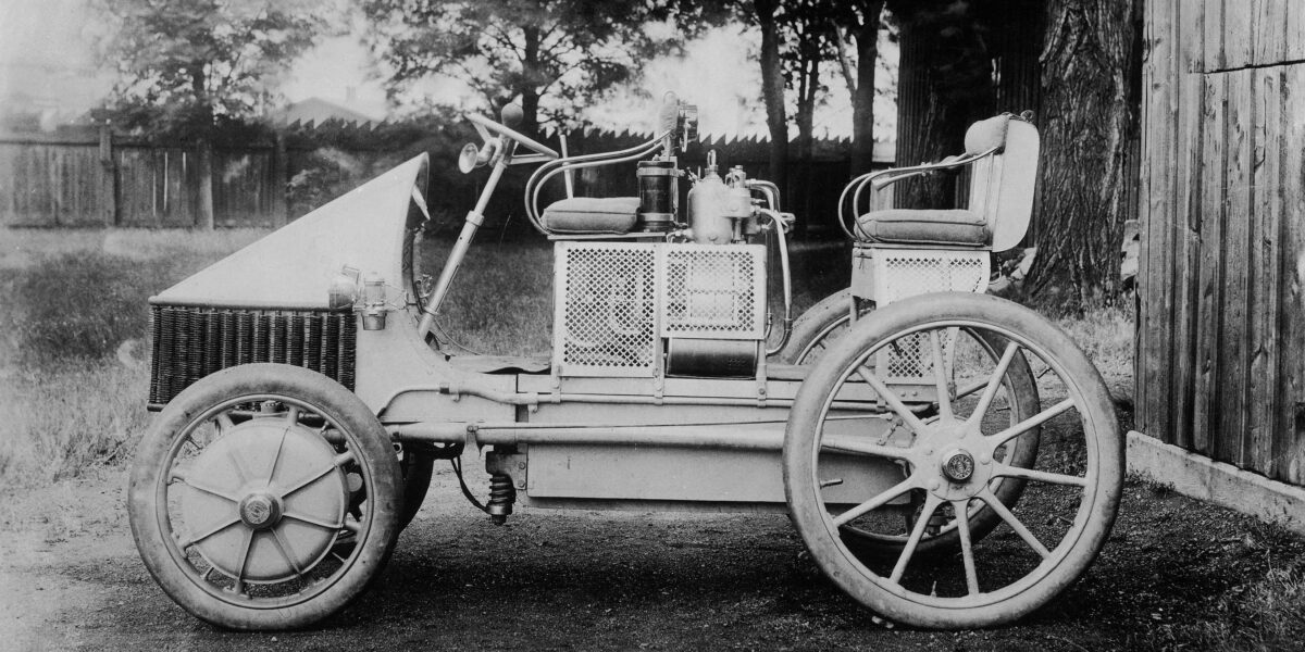 Aus diesem Grund hatte der E-Antrieb nach einem kurzen Hoch in der Frühzeit der Autogeschichte schon bald keine Chancen mehr gegen die aufkommenden Verbrenner – und Porsche die Idee, hinter den Vordersitzen des Lohner noch zwei Einzylinder-Benzin-Motoren von De Dion einzubauen.