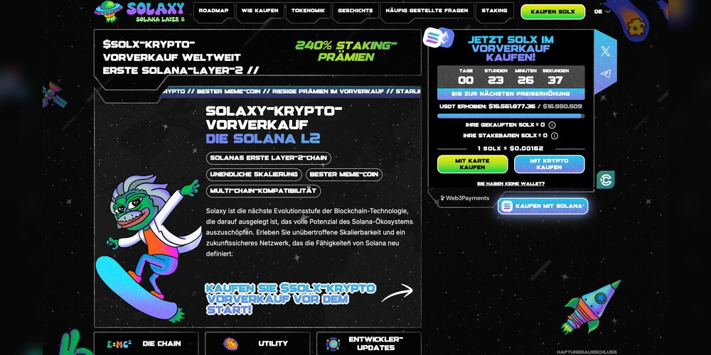 Die hohe Nachfrage im Presale deutet darauf hin, dass Anleger großes Potenzial in dieser Bitcoin Alternative sehen. Denn für eine fortschreitende Massenadoption braucht es eine skalierte Blockchain. Darauf setzt das Team hinter Solaxy – der nach eigener Aussage ersten Layer-2 für Solana.