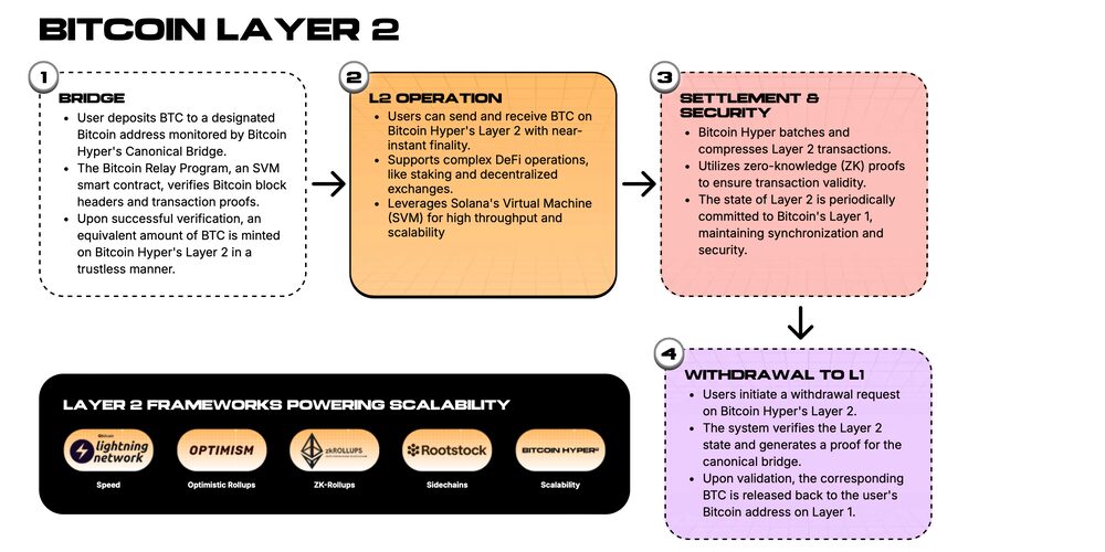 BTC werden durch Smart Contracts in das Layer-2-System übertragen, wobei die Validierung direkt auf Basis der Bitcoin-Blockdaten erfolgt. So bleibt die Kontrolle stets bei den Nutzern. Wrapped-Tokens im Hyper-System können anschließend vielfältig eingesetzt werden – etwa zum Staking oder für Liquidität. Bei Bedarf lassen sich die Werte jederzeit sicher auf die Bitcoin-Blockchain zurückführen.