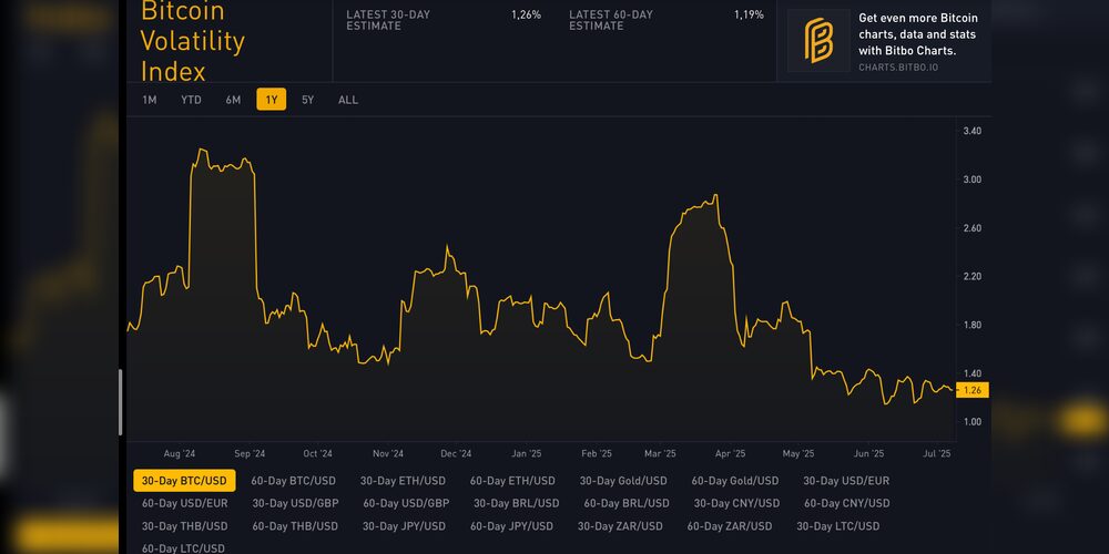 In den vergangenen Tagen zeigte sich der Bitcoin-Markt ungewöhnlich ruhig – die Volatilität bewegte sich auf einem der tiefsten Niveaus der letzten Monate. Historisch betrachtet ging solch eine Ruhephase oft größeren Kursbewegungen voraus. Im Zusammenspiel mit dem MVRV-Indikator, der weiterhin oberhalb seines 365-Tage-Durchschnitts notiert, ergibt sich ein konstruktives Bild: Diese Konstellation spricht dafür, dass die aktuelle Marktphase ideal für eine strategische Akkumulation von Bitcoin sein könnte.