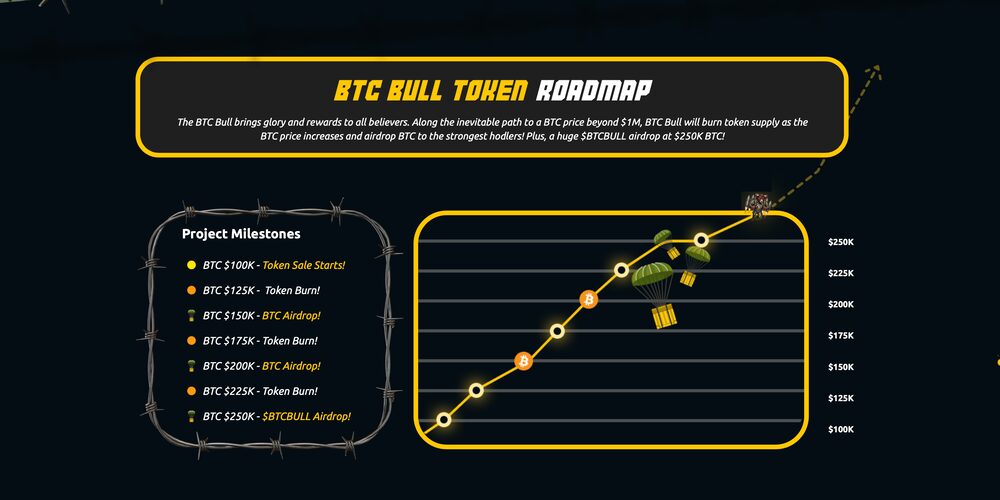 Im Kern basiert BTCBULL auf der engen Kopplung an den Kursverlauf von Bitcoin. Das Projekt implementiert ein System, bei dem Bitcoin-Airdrops und Token-Burns automatisch bei vorher festgelegten Kursmarken ausgelöst werden. Alle 25.000 US-Dollar, die Bitcoin zulegt, wird entweder eine neue Airdrop-Runde gestartet oder ein Teil der BTCBULL-Token verbrannt. Bereits ab 125.000 US-Dollar beginnt die Verknappung durch das Burn-Modell, während die erste Bitcoin-Ausschüttung bei 150.000 US-Dollar startet.
