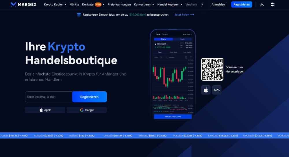 - Margex – ermöglicht anonymes Handeln ohne KYC. Mit ihrem einfachen Interface ist sie besonders für Krypto-Einsteiger und sichere Transaktionen geeignet und eine gute Wahl, wenn man verschiedene Arten von Krypto Wallets vergleichen möchte.