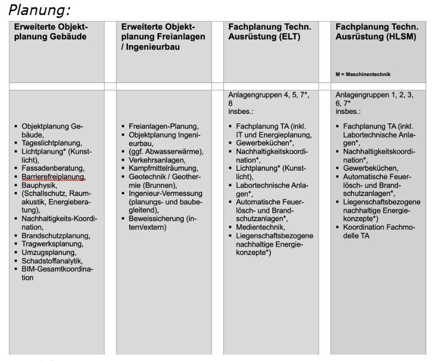 – die Ausführung der Technischen Ausrüstung in den Bereichen Heizung,