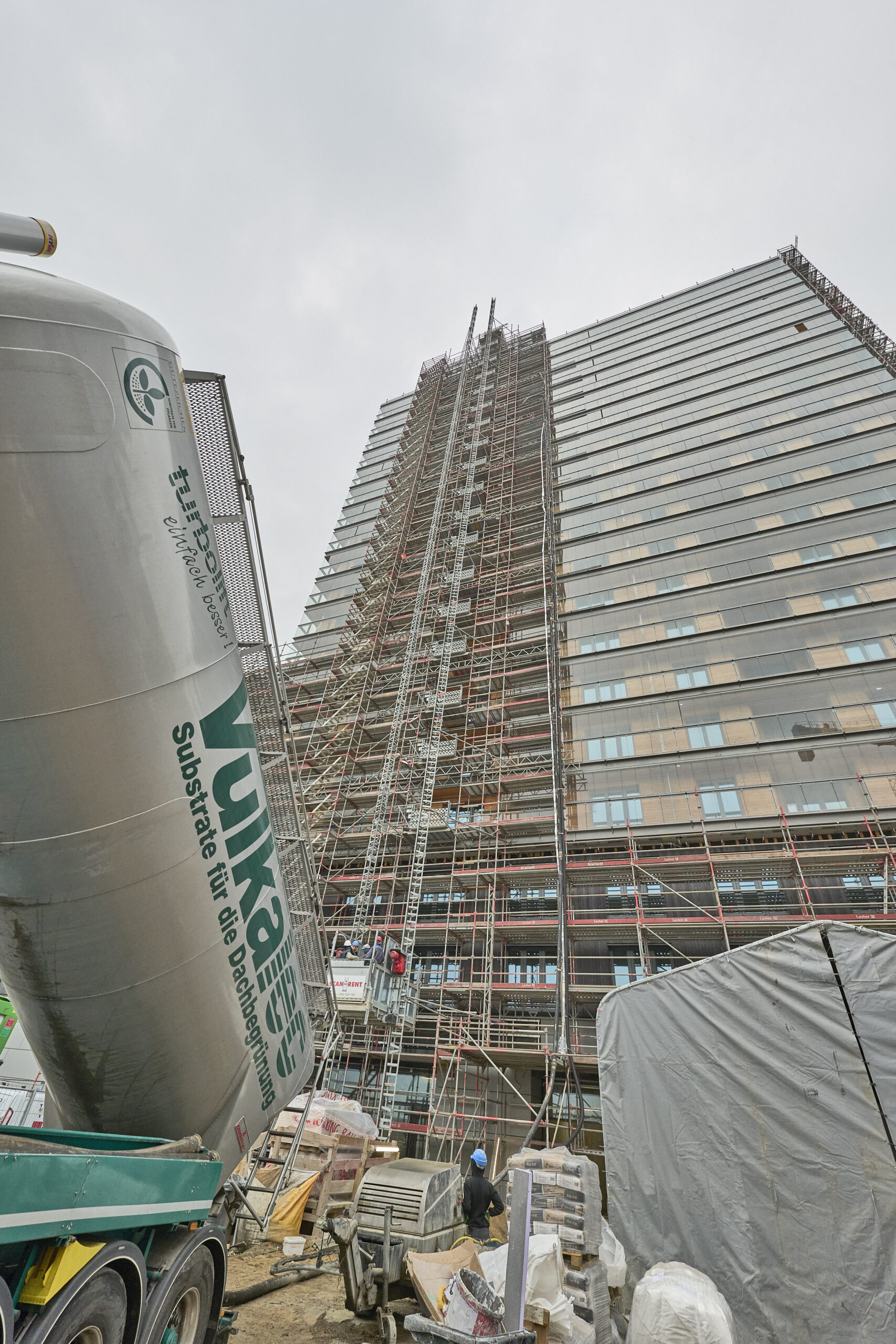 Neues Einbauverfahren für große Höhen und weite Strecken im Holzhochhaus „Roots“