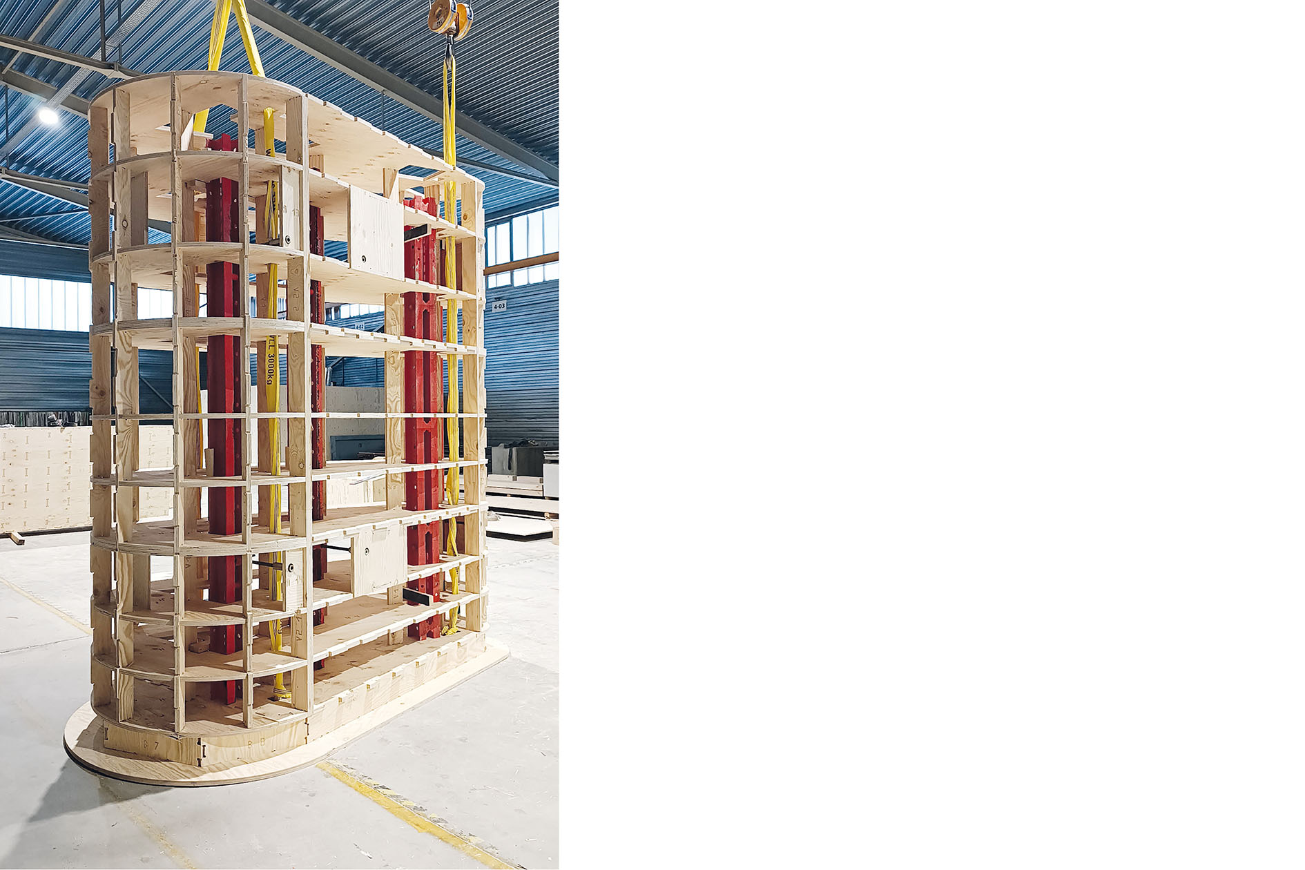 – Komplettservice durch DataForm.Work: Die Planungsdaten werden empfangen und mit Hilfe der KI-Software generiert, bevor sie direkt an die CNC-Maschinen in der Produktionshalle des Joint Ventures weitergeleitet werden. Dort werden die Paneele gefräst und die Sonderschalungen montiert. Die fertigen Elemente werden dann an den Kunden ausgeliefert. – Geschäftsmodell „Formwork as a Service“: DataForm.Work ist für die Erstellung der Unterkonstruktion der Sonderschalung verantwortlich. Diese Daten werden dann auf die CNC-Maschine des Kunden übertragen, die von Dataform.Work bereitgestellt wird. Das Fräsen und Montieren der endgültigen Sonderschalungselemente wird vom Kunden selbst durchgeführt. Da die Software eine hochdetaillierte Montageanleitung erstellt, kann dieser letzte Schritt unabhängig von der Erfahrung der Mitarbeitenden selbst bei komplexesten Sonderschalungsprojekten durchgeführt werden.