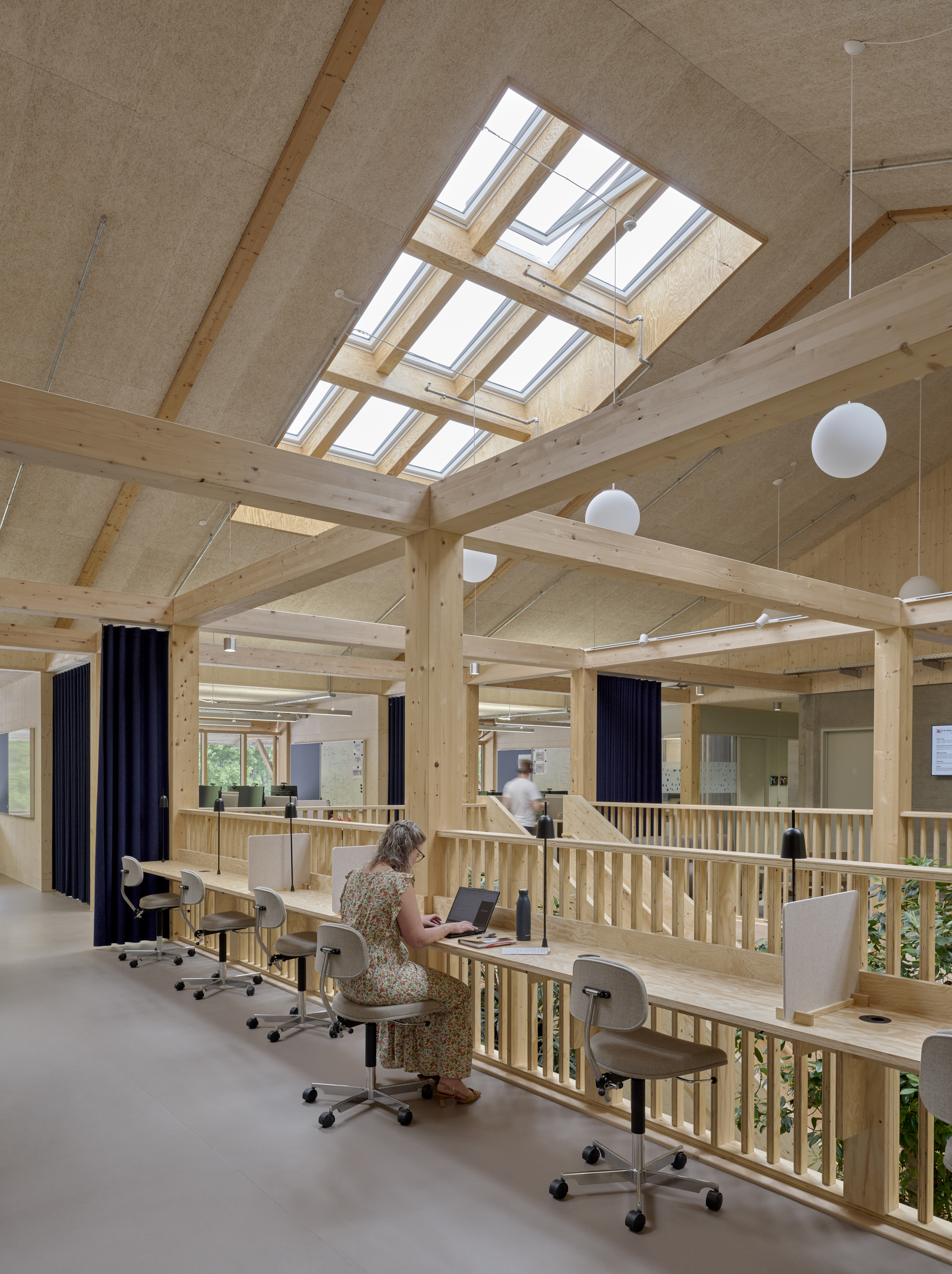Flexibel nutzbare Arbeitsplätze befinden sich u.a. im ersten Obergeschoss des Velux LKR Innovation House.