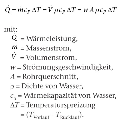 - Die Temperaturspreizung zwischen Vor- und Rücklauf bestimmt die mit einem bestimmten Volumenstrom transportierbare Wärmeleistung: