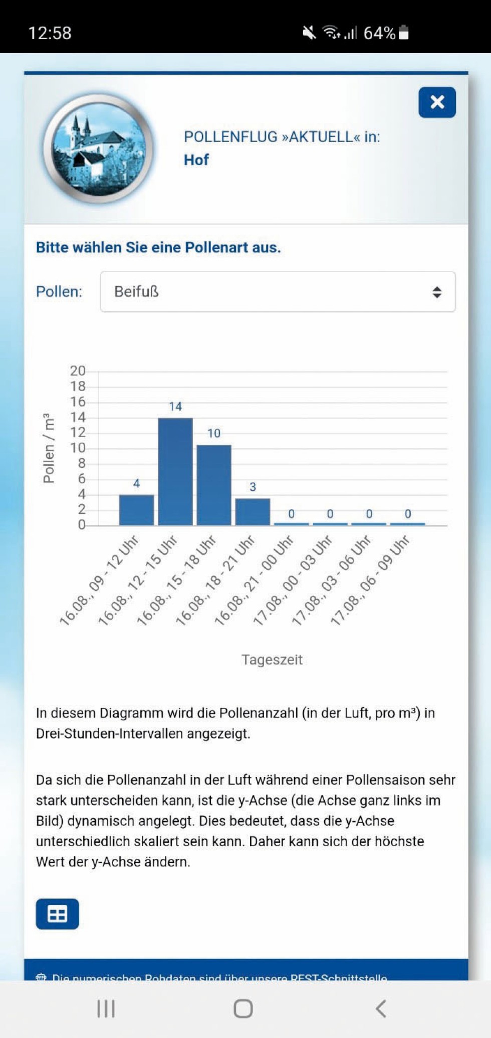 Daten für die wichtigsten allergieauslösenden Pflanzen