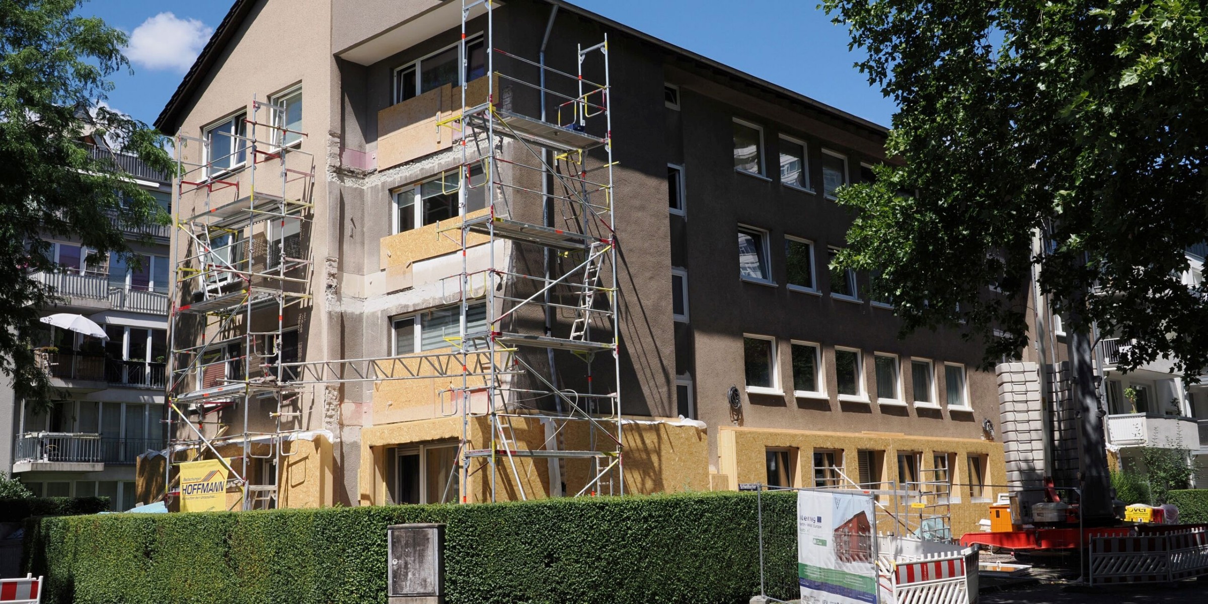 Im Zuge eines Pilotprojekts wurde ein Mehrfamilienhaus im Kölner Stadtteil Zollstock vom energetischen Problemfall zum Vorzeigeprojekt mit KfW-Effizienzhaus 40 EE-Standard. Um trotz luftdichter Dämmung ein gesundes Raumklima zu gewährleisten, wurden alle Wohnungen mit Komfort-Lüftungsgeräten ausgestattet.