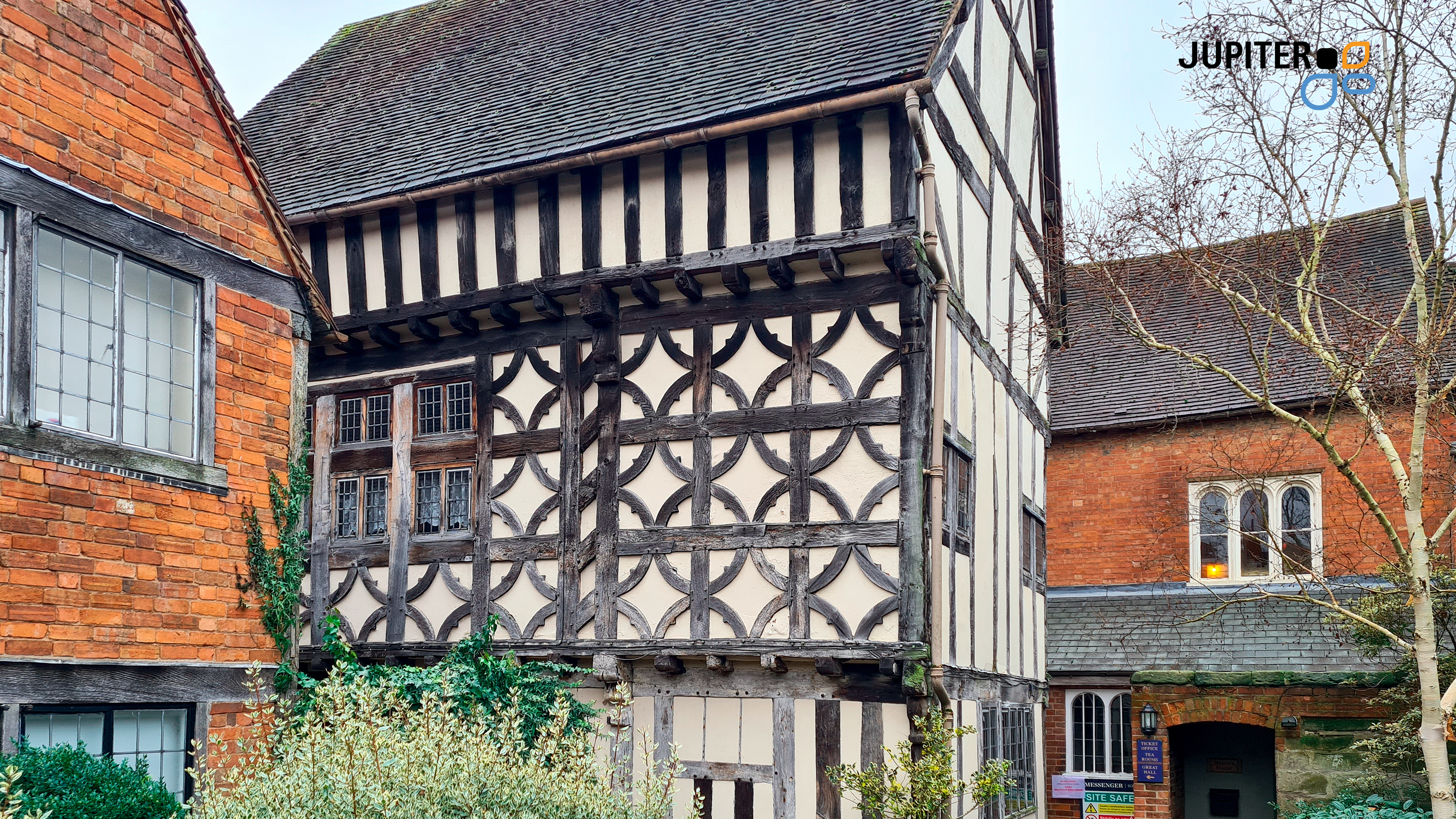 Bei dem denkmalgeschützten Bauwerk handelt es sich um das sogenannte „Lord Leycester Hospital“ Das 700 Jahre alte Gebäude stammt noch aus der Tudor-Zeit und war ursprünglich als Kapelle errichtet worden. Bäume aus ganz England wurden damals zum Bau der mittelalterlichen Fachwerkgebäude genutzt.