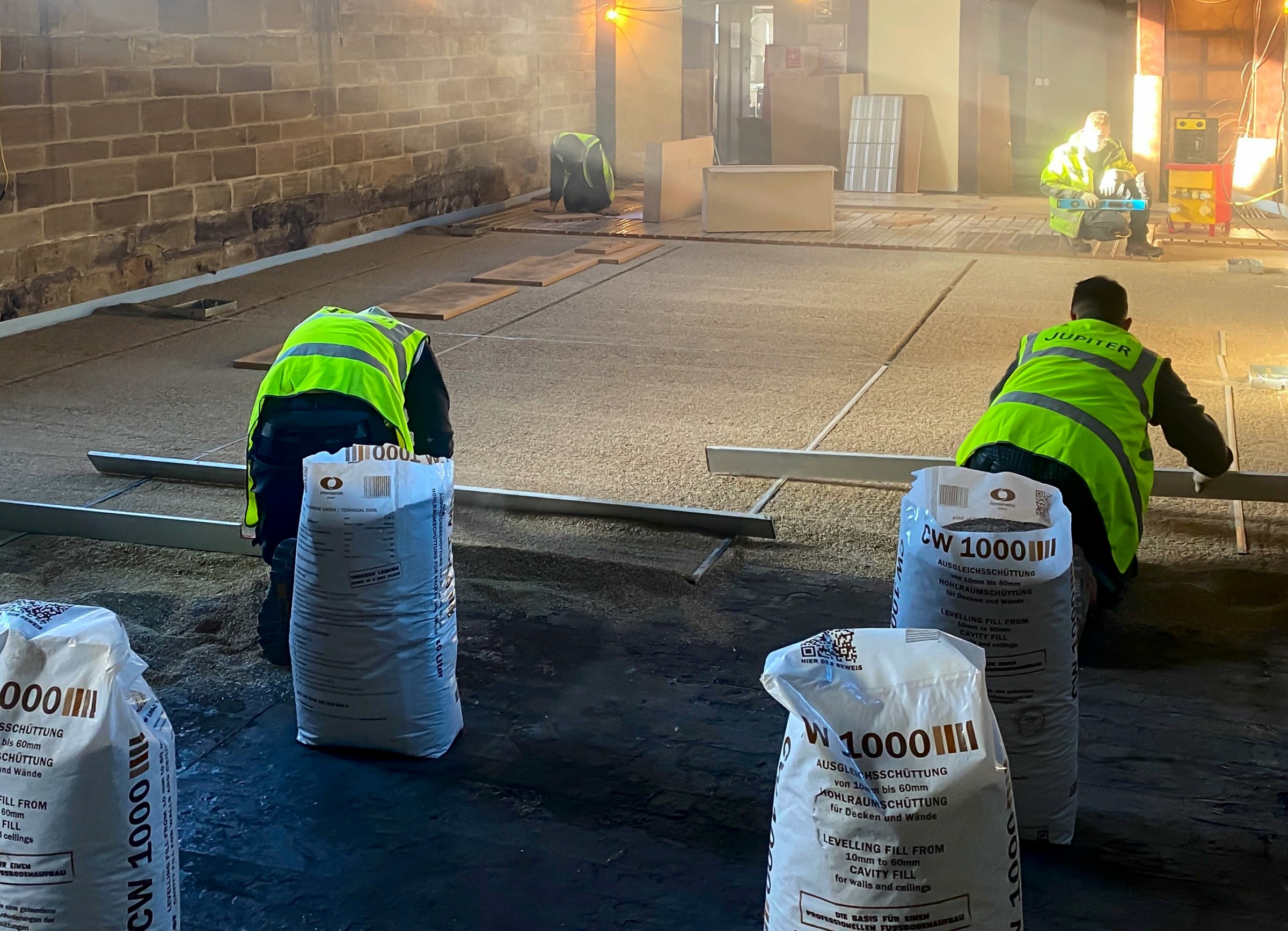 Das sensible Fachwerkgebäude ließ keine herkömmlichen Bodenaufbauten zu. Daher gab es nur eine logische Alternative: „Der Trockenaufbau bietet eine nicht-invasive Methode, um stabile Böden ohne schwere Estriche zu gewährleisten. Dies war besonders wichtig für das Lord Leycester Hospital, da die Erhaltung der originalen Holzbalken und Bodenbalken oberste Priorität hatte. Durch diese Methode konnten wir zusätzliche Belastungen der bestehenden Struktur vermeiden und so die bauliche Integrität des Gebäudes schützen“, berichtet Chris Kollmer, Geschäftsführer der Jupiter Heating Systems Ltd.. Dazu suchte er sich die Unterstützung von internationalen Industriepartnern. Benötigt wurde: