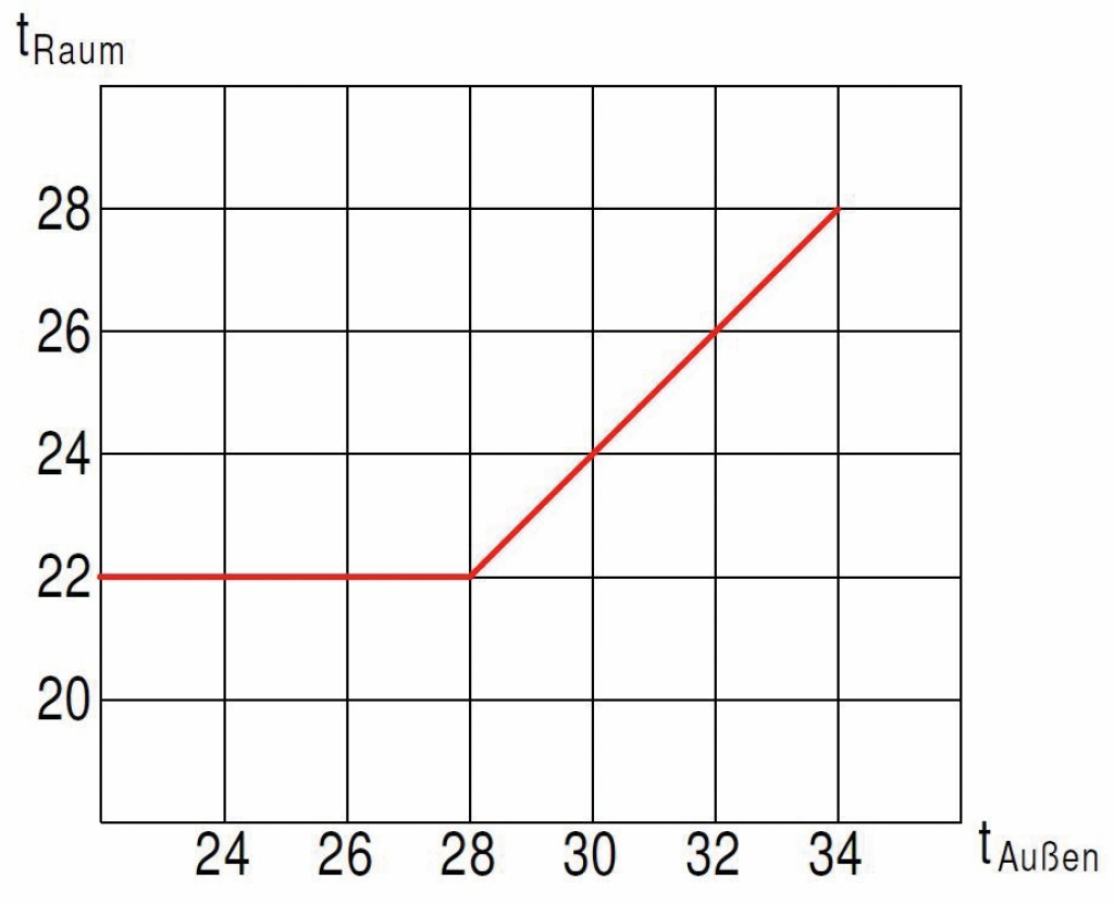 Die detaillierte Beschreibung würde den Rahmen des Beitrages sprengen, ohne dabei weitere Erkenntnisgewinne zu erzeugen. Die aufgeführten Angaben beziehen sich auf die Werte, die nach VDI 2078:2015–06 gefordert werden. Die Raumtemperatur wird gleitend in Abhängigkeit der Außenlufttemperatur gefahren. Der Soll-Wertverlauf ist in im Bild dargestellt.