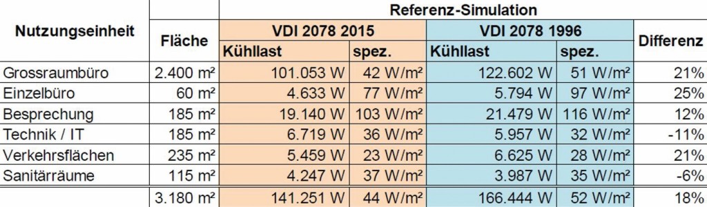 Die Ergebnisse der Referenzsimulation nach der aktuellen und der alten VDI-Richtlinie sind in der nachfolgenden Tabelle zusammengefasst.