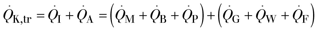 Die gesamte, trockene Kühllast bestehend aus inneren und äußeren Lasten ergibt sich damit zu:
