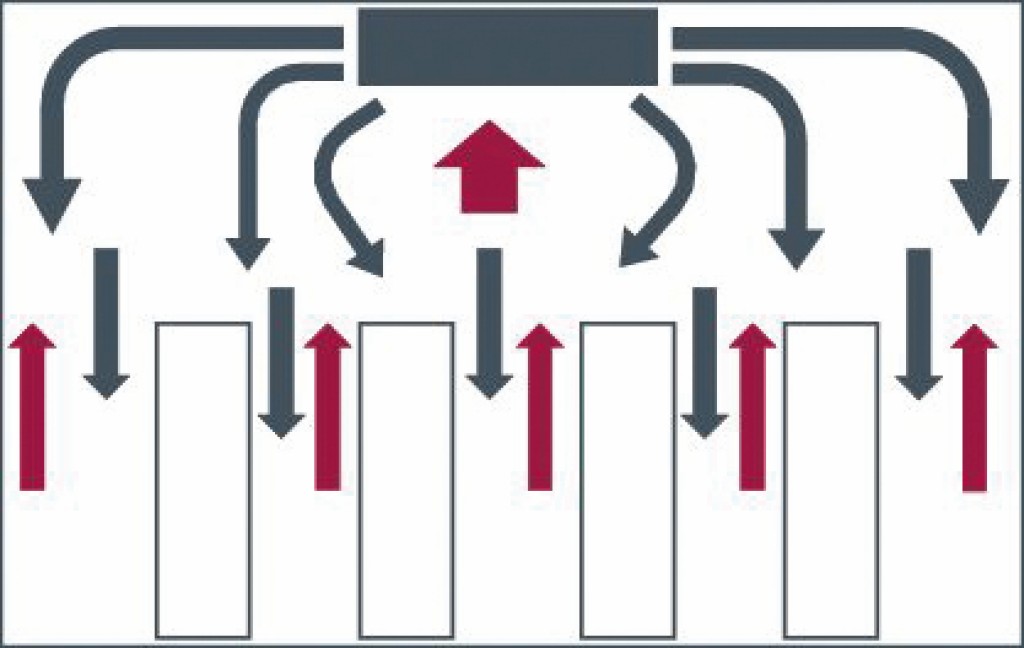 Zur Wärmelastabfuhr in RZ haben sich in Abhängigkeit der Höhe der Wärmeleistung der Racks und der Leistungsdichte im RZ verschiedene Arten der Luftführung bewährt: