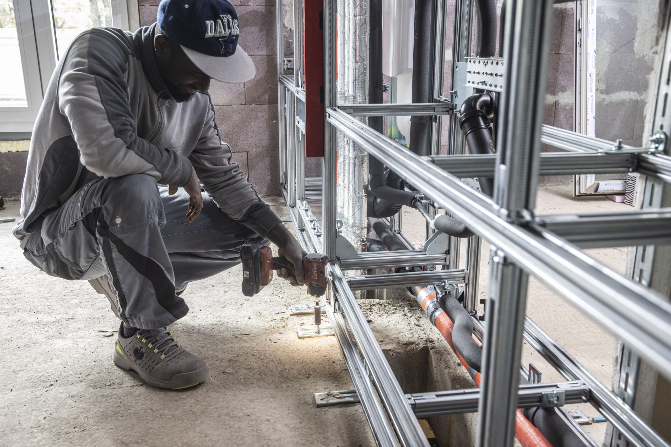 Auf dem August-Klingler-Areal wurden insgesamt 1.000 Vorwände und etwa 800 Trennwände bestehend aus Grund- und Aufsatzrahmen, welche teilweise als Schächte genutzt werden, beziehungsweise 62.000 Meter GIS Profil eingebaut. „Deswegen war es besonders wichtig, dass die Zusammenarbeit reibungslos funktioniert – und das hat sie. Geberit hat die komplette Ausfertigung der Wände anhand von unseren Plänen übernommen“, sagt Marc Hanen.
