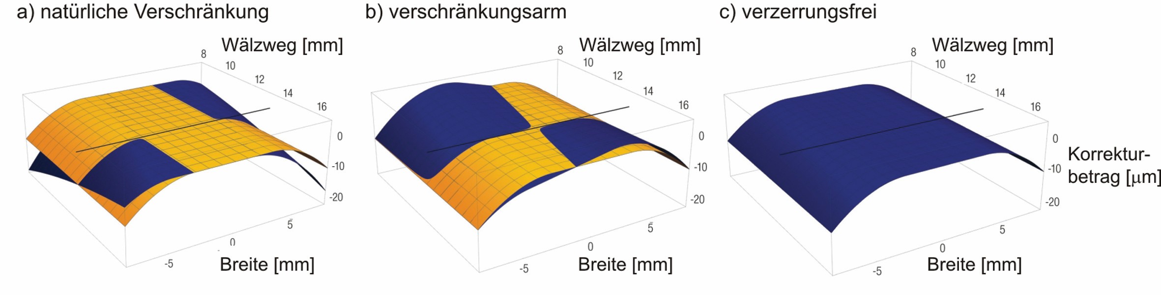 Es ist seit vielen Jahren möglich, diese natürliche Verschränkung bei Flankenlinienkorrekturen zu verhindern [12]. Neueste Entwicklungen ermöglichen dies auch verzerrungsfrei [14], wie in Bild 4 dargestellt.